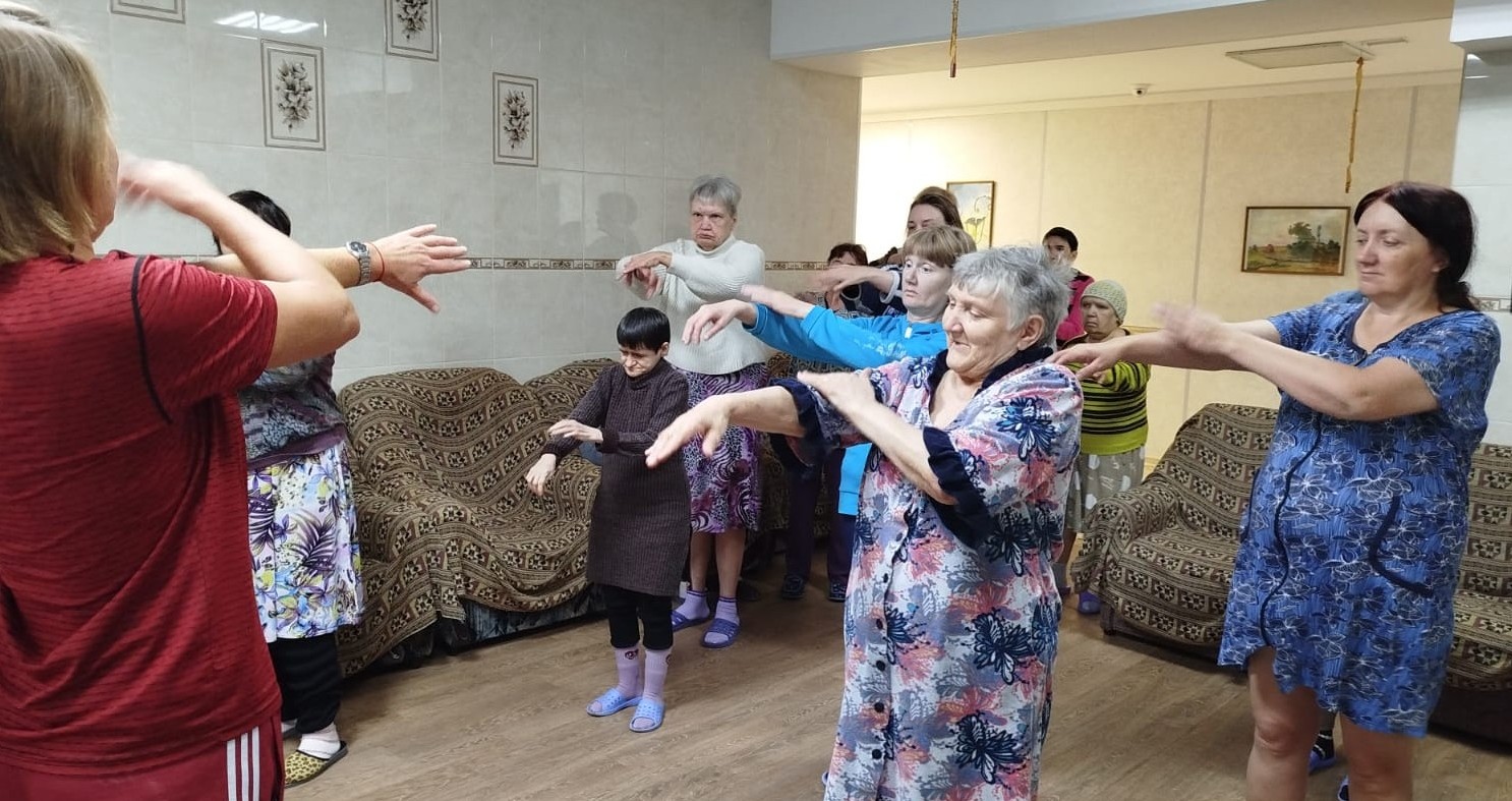 Каждое утро в нашем Омском интернате начинается с чего-то особенного – с утренней зарядки, которая не просто пробуждает тело, но и наполняет его позитивной энергией! Мы добавили в нашу привычную разминку кое-что новенькое и очень приятное – легкие похлопывания по мышцам рук и ног. Это не просто игра, это отличный способ улучшить кровообращение, снять напряжение и почувствовать, как мышцы оживают. Такая зарядка – это не только польза для тела, но и настоящий праздник для души! Легкие, веселые движения, смех и общение создают неповторимую атмосферу радости и единства. Мы чувствуем себя бодрыми, полными сил и готовыми к новым свершениям.